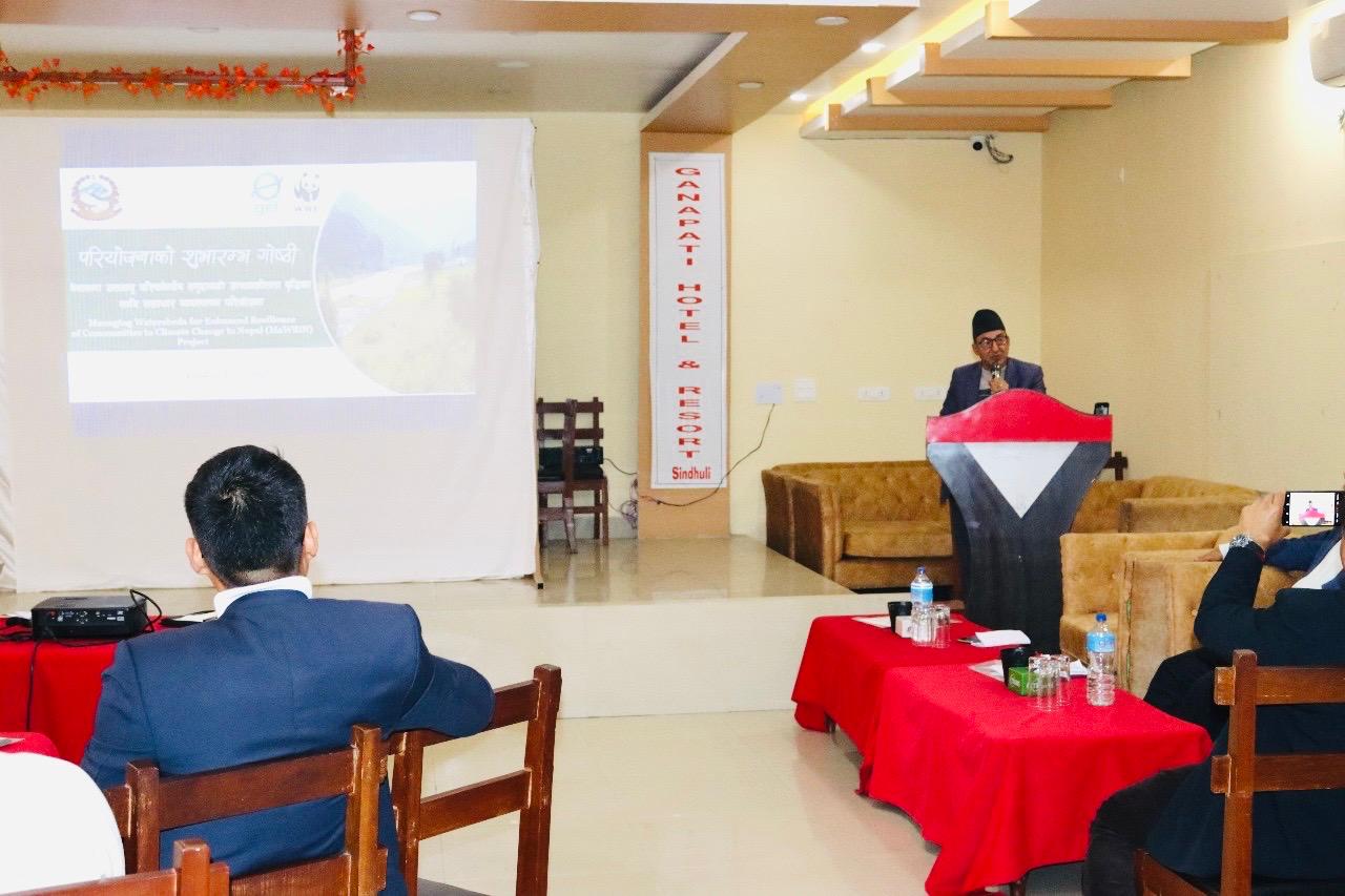 नेपालमा जलवायु परिवर्तनसँग समुदायको उत्थानशीलता वृद्धिका लागि जलाधार व्यवस्थापन परियोजना (Managing Watersheds for Enhanced Resilience of Communities to Climate Change in Nepal Project -MaWRiN Project) को शुभारम्भ गोष्ठी जिल्ला समन्वय समिति सिन्धुलीका प्रमुख, श्री कारसङ्ग लामा ज्यूको अध्यक्षतामा र वन तथा वातावरण मन्त्रालय, बागमती प्रदेशका माननीय मन्त्री श्री कृष्ण प्रसाद सिलवाल ज्यू को प्रमुख आतिथ्यतामा वि.सं २०८१ माघ २९ गते सम्पन्न भयो। उक्त शुभारम्भ गोष्ठीको उद्देष्यमा परियोजनाका उद्देश्य, कार्यक्षेत्र, र संस्थागत संरचना सहित सरोकारवालालाई औपचारिक रूपमा परियोजनाको परिचय गराउदै समन्वय, सहकार्य, र प्रभावकारी कार्यान्वयनलाई सुदृढ वातावरण तयारका लागी सुझावहरू सङ्कलन गर्नु रहेको थियो । यो परियोजना Global Environmental Facility (GEF) को आर्थिक अनुदान सहायतामा on budget on treasury प्रणाली मार्फत खर्च हुने गरि नेपाल सरकार तथा बागमती प्रदेश सरकारवाट संचालन हुनेछ, जसलाई डब्लु. डब्लु. एफ. (WWF) global Environmental GEF agency को तर्फवाट प्राविधिक सहयोग रहनेछ । यो परियोजना नेपालको बागमती प्रदेश अन्तर्गतका सिन्धुली जिल्लाको कमलामाई नगरपालिका (१, ४ र ५ को पानी ढलो), घ्याङलेख गाउँपालिका (१ देखि ३ सम्मको पानी ढलो), मरिण गाउँपालिका (१ देखि ७ सम्मको पानी ढलो) र हरिहरपुरगढी गाउँपालिका (२, ४ देखि ८ सम्मको पानी ढलो) मा फैलिएको मरिण जलाधार क्षेत्रका लागि संचालित हुनेछ।यो परियोजनाको अवधि,१५ अगष्ट २०२४ देखि १४ अगष्ट २०३०,सम्म गरि ६ वर्षको हुनेछ ।