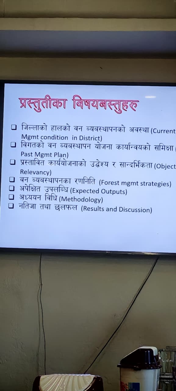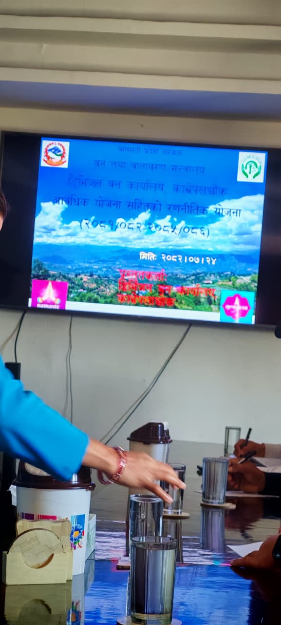 बागमती प्रदेशका वन तथा वातावरण मन्त्री श्री भरत बहादुर के. सी. ज्यूकाे प्रमुख अभिभावकत्त्वमा डिभिजन वन कार्यालय सिन्धुपाल्चाेक र काभ्रेपलाञ्चाेककाे छुट्टाछुट्टै पञ्चवर्षीय रणनीतिक आवधिक याेजनाकाे प्रस्तुती सम्पन्न भै सुझाव संकलन सम्पन्न भएकाे छ ।