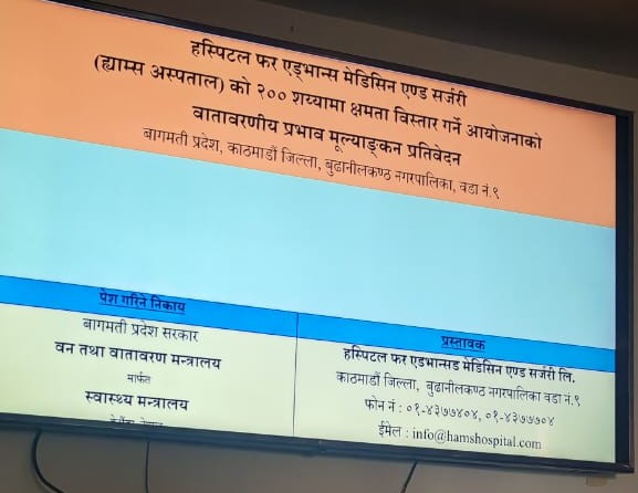 हस्पिटल फर एड्भान्स मेडिसिन एण्ड सर्जरी(ह्याम्स अस्पताल) तथा अर्वान पेन्टागन व्यवसायिक आवसीय भवनको वातावरणीय प्रभाव मूल्याङ्कन प्रतिवेदन प्रस्तुति कार्यक्रम